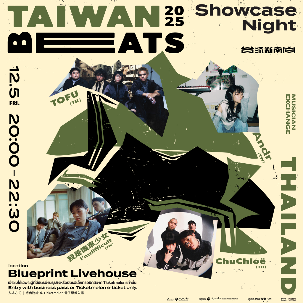 Taiwan Beats returns with a renewed collaboration between the Thai and Taiwanese music scenes, led by Taiwanâs Bureau of Audiovisual and Music Industry Development under the Ministry of Culture. The bureau continues to strengthen international cultural ties by sending Taiwanese artists abroad and expanding the reach of Taiwanese pop music. Thailandârecognized for its cultural potential and fast-growing music marketâremains one of their key destinations.